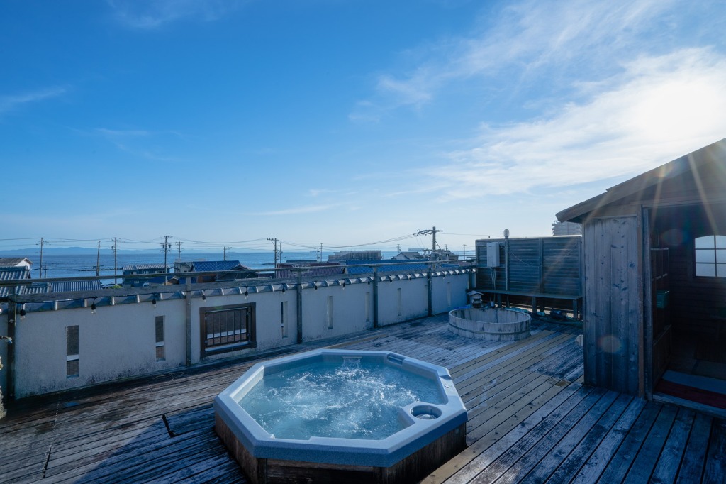 ジャグジー風呂には美容面だけでなく健康面でも嬉しい効果がたくさん期待できます。リラックス効果、ダイエット効果、美肌効果、血行促進など…。当旅館の屋上にあるジャグジー風呂は夜には青くライトアップされ、幻想的な雰囲気の中で入浴をお楽しみいただけます。